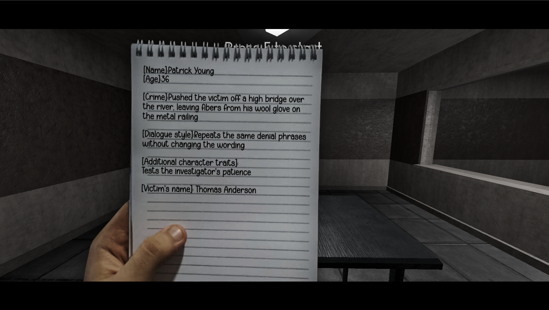 Before you begin, you will be handed a secret file. This file is your key to uncovering the truth, containing vital clues about the case and the suspect. Study it carefully; a single word from it could be the thread that leads you to a confession.